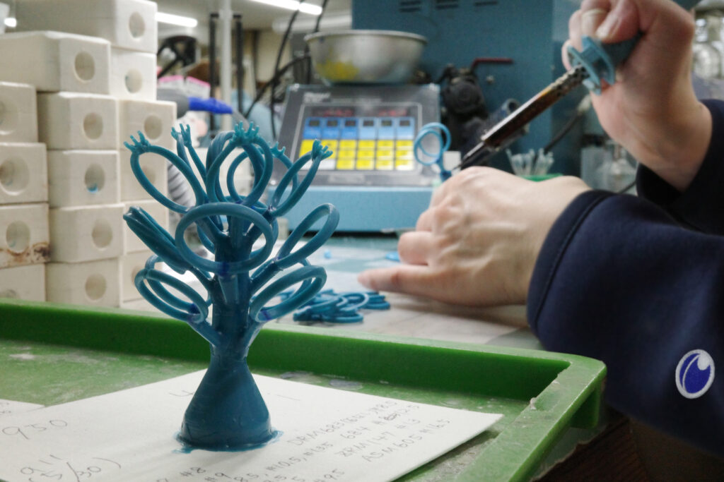 鋳造(キャスト) ワックスで作成した原型を石膏で固め、金属を流し込むことで成形する技術です。複雑なデザインも精緻に再現でき、量産からオーダーメイドまで柔軟に対応しています。